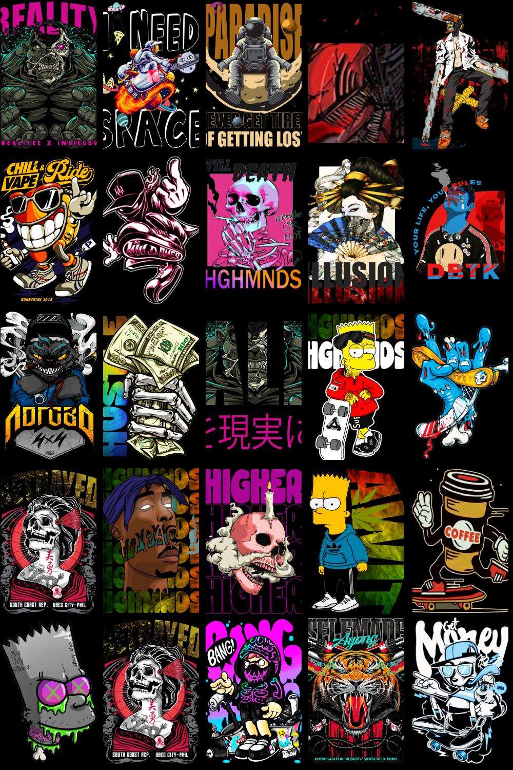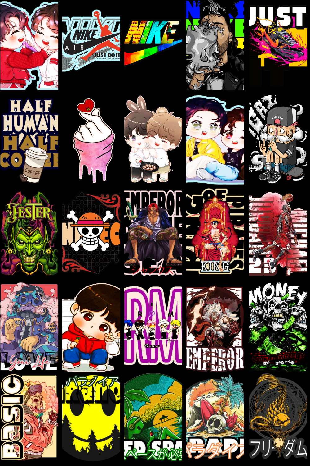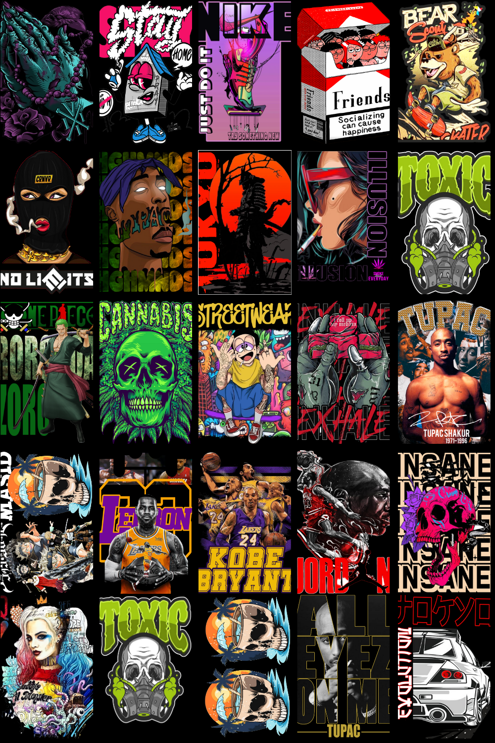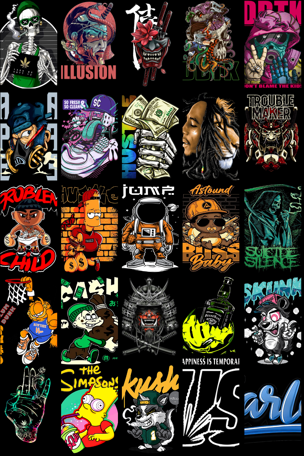 The designs showcased in the preview images reflect the exact aesthetic included in this pack — dark anime energy, intense expressions, urban streetwear influence, gothic tones, cyberpunk highlights, and bold contrast that stands out on apparel. These graphics are specifically structured to work exceptionally well on T-shirts, hoodies, oversized streetwear fits, posters, wall art, and stickers.