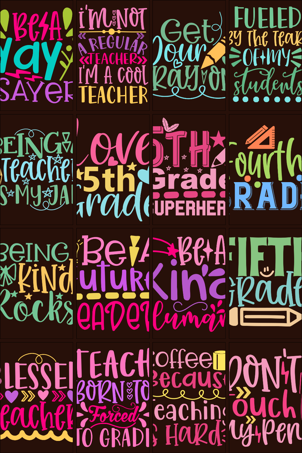 Classroom humor, teaching quotes, educator pride, grade level shirts (Pre-K, Kindergarten, 1st-5th grade), teacher appreciation gift graphics.