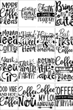 Motivational quotes, family sayings, coffee lover humor, mom life typography.