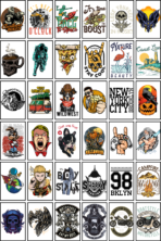 Includes: vintage badges, skull artwork, biker graphics, streetwear designs, retro typography, motivational quotes, urban art, Halloween themes, surf culture, automotive designs, gaming graphics, tattoo-style illustrations, and much more.