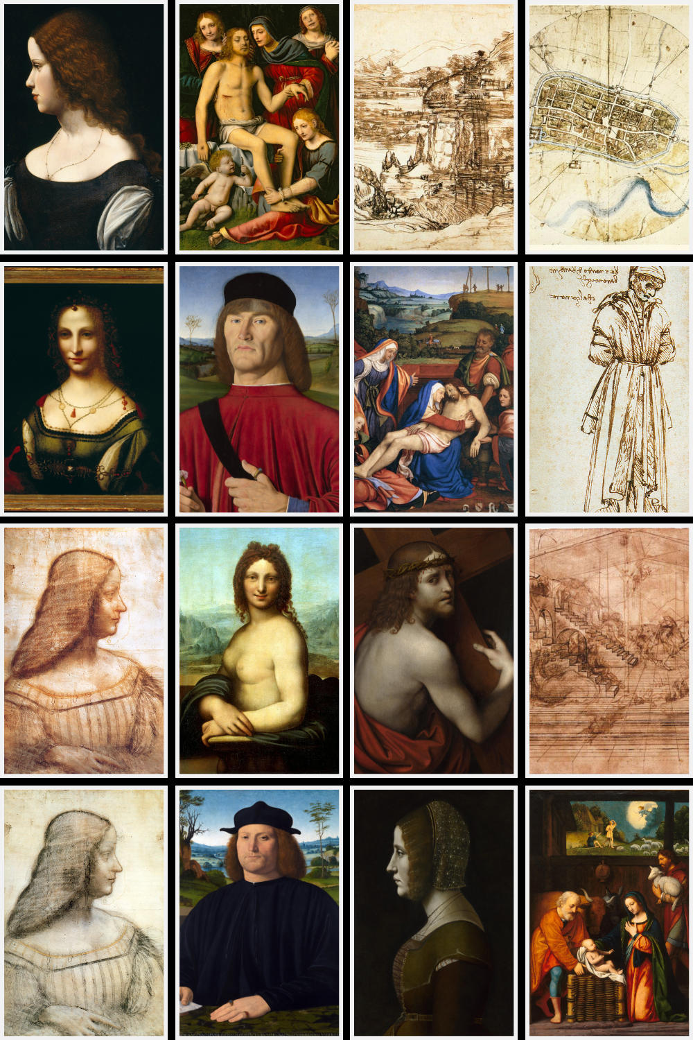 These are high-quality digital reproductions of public-domain Da Vinci artworks and inspired pieces.