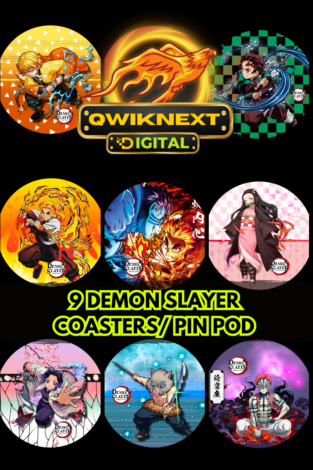 Bring iconic anime energy to coasters, pin badges, and compact merch with this 9 Demon Slayer–inspired POD designs bundle, crafted for sellers who want high-impact circular artwork that performs beautifully at small print sizes.