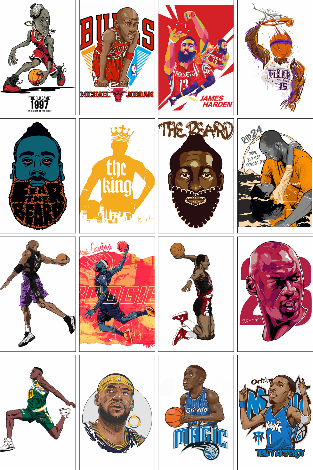 The collection includes 100+ visually rich digital designs, inspired by iconic basketball eras, legendary player moments, and modern NBA culture. Each design is crafted in a bold, high-contrast illustration style that performs exceptionally well on T-shirts, hoodies, posters, and merchandise.