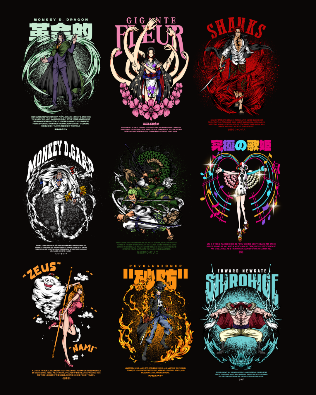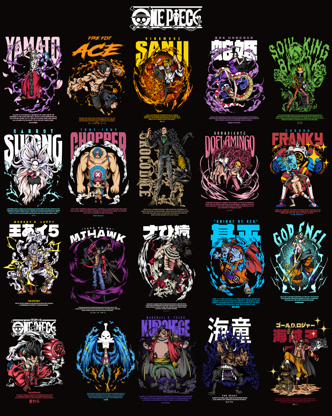 Bring your creative projects to life with this exclusive OnePiece-inspired design bundle, featuring 30+ premium illustrations, graphics, and design elements crafted for creators, POD sellers, merch brands, and anime-themed businesses.
