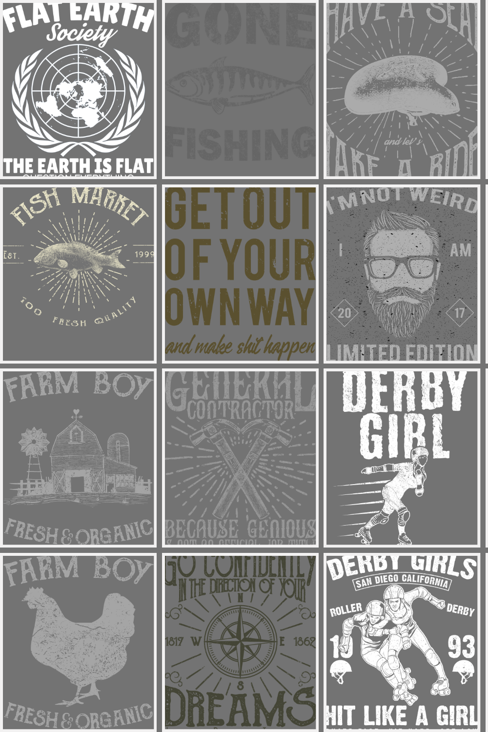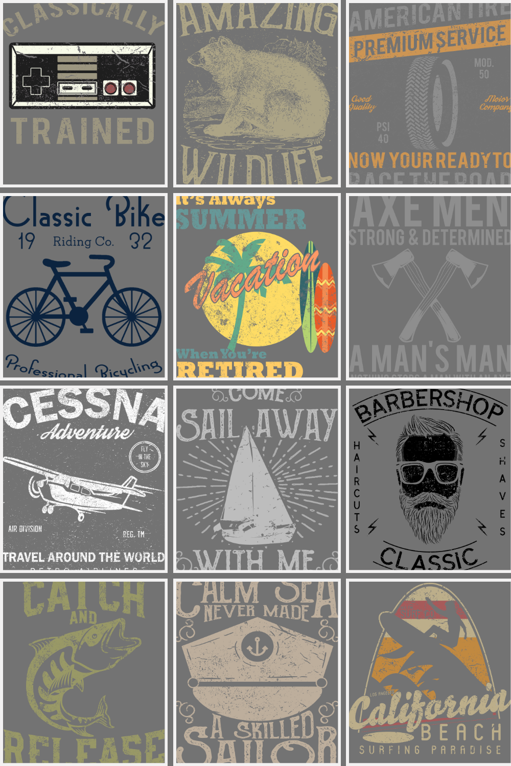 Each design follows a vintage worn-out aesthetic, making them perfect for: